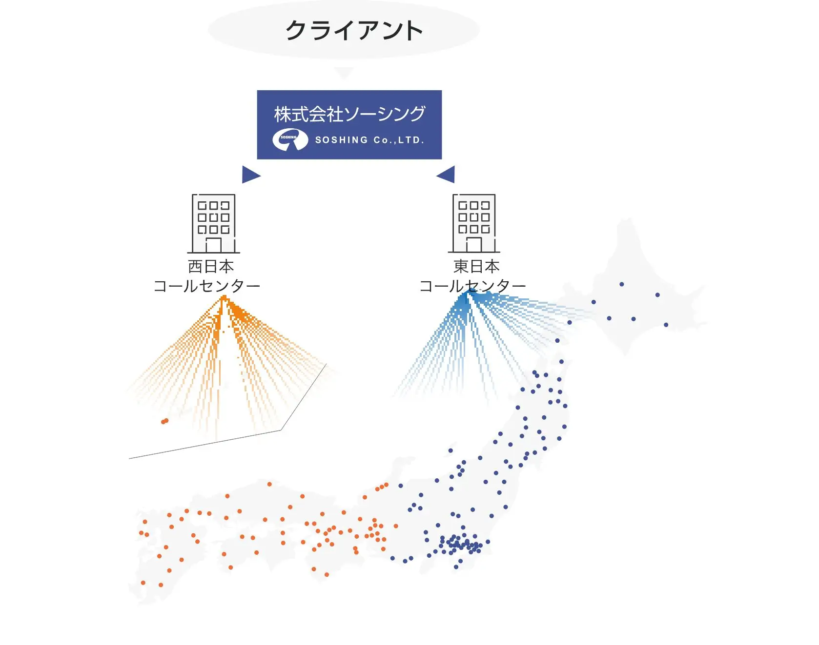 ( 株 ) ソーシングは、2005年3月に株式会社ソーデン社と株式会社八進の共同出資により設立し、全国120の「工事デポ」(高度な電気通信技能を誇る技術者の拠点)を日本全国に展開しています。